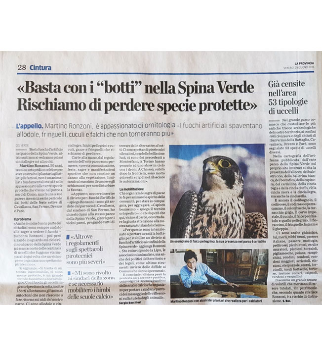 Mi sono battuto contro una legge assurda da quando ho osservato nel cielo la fuga di centinaia di volatili impazziti in occasione di fuochi d’artificio esplosi nel contesto del Parco Regionale della Spina Verde di Como.